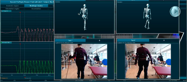 これに対し、マイオモーションはモーションセンサーを利用するため計測空間を選ばず、どんな場所でも使えます。リハビリ室以外の階段や屋外など種々のシチュエーションで活用できますし、横に介助者がいても問題ありません。 また、リアルタイムでモニター画面に骨格モデルが歩く様子を映しだせるため、リハビリ中に自分の手足の動きを客観的に観察することができます。 モニター画面上で術前と術後の歩き方を比較することや、各関節の動きを細かく分析することも可能です。 リハビリのポイントを的確に捉えることができるため、リハビリの治療方針を決定するのに役立つのです。