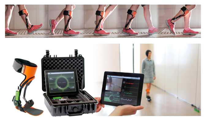 短下肢装具ゲイトソリューションの油圧ユニットに生じる力と角度を計測することにより、運動力学的情報を取得できる装置です。歩行周期における足関節底屈モーメントと足関節角度を計測し、波形として捉えることができます。歩行状態を客観的に評価して、効果的な治療の指針を作るのに役立ちます。脳卒中などで片麻痺(身体の片側の手足が不自由になる症状)を生じた場合、麻痺した脚を補助するために足首を固定する短下肢装具が昔から使用されてきました。片麻痺の患者様が歩きにくいのは、すねの筋力をうまく使えないためです。ゲイトジャッジシステムを用いてリハビリテーションを行うことで、これまで難しいとされてきた歩行の改善ができるのではないかと注目されています。