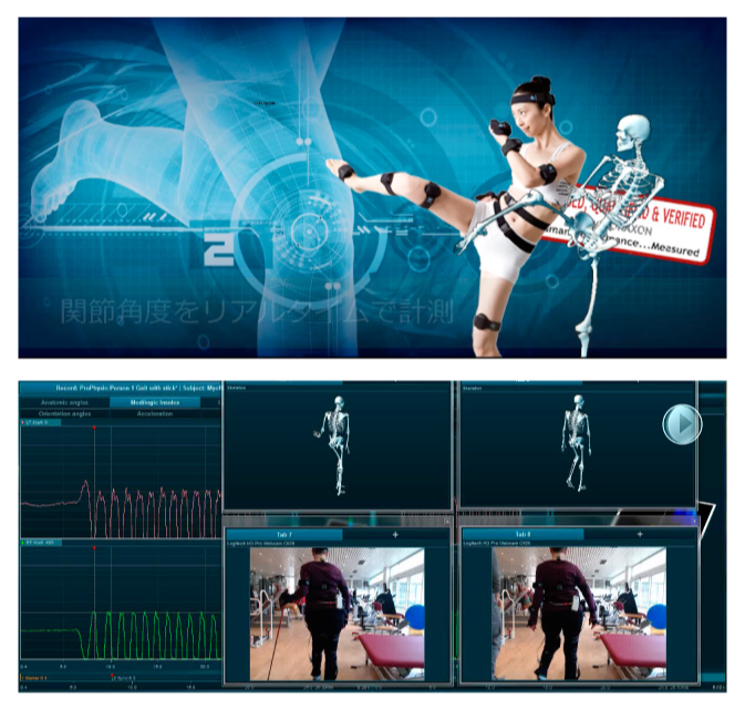 身体動作を3次元的に解析し、最適なリハビリテーション方法を選択するために3次元動作解析システム(Noraxon社のMyomotion)を脊椎・上肢・下肢のフルセットで導入しました。 このシステムは大学病院などで研究目的に使用されることがほとんどで、民間病院でのフル導入は国内で初めてです。マイオモーションはビデオカメラではなくモーションセンサーを利用した3次元動作解析システムです。そのため計測空間を選ばず、どんな場所でも使えます。リハビリ室以外の階段や屋外など種々のシチュエーションで活用できますし、横に介助者がいても問題ありません。また、リアルタイムでモニター画面に骨格モデルが歩く様子を映しだせるため、リハビリ中に自分の手足の動きを客観的に観察することができます。モニター画面上で治療前後の歩き方を比較することや、各関節の動きを細かく分析することも可能です。