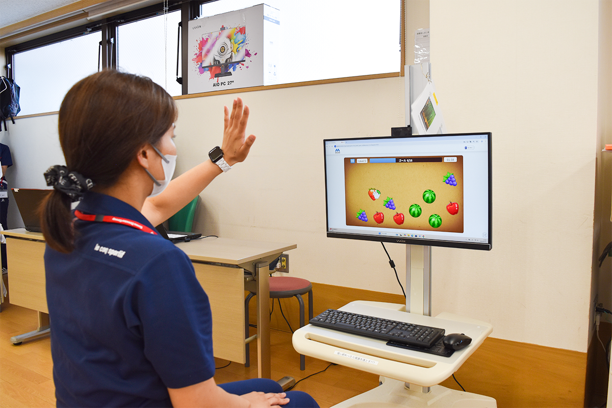 「TeleRehab Play」は、カメラによる動作認識技術を活用し、ゲームを通じて運動や認知機能のトレーニングを行える仕組みになっています。訓練は、上肢や頭部の運動、視覚と運動の協調訓練など、多層的に構成しており、脳卒中後の方、高齢者、認知症患者などに幅広く対応可能です。